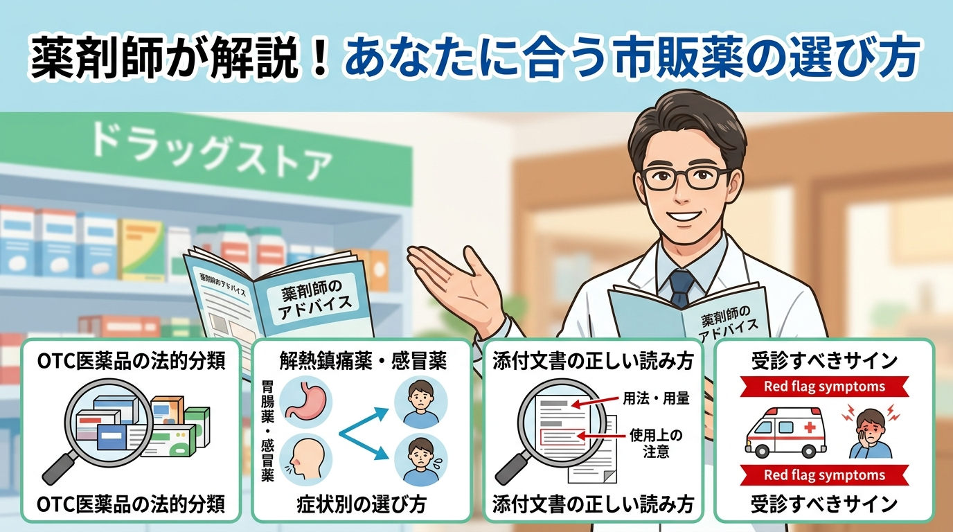 本記事では、薬剤師の立場から、OTC医薬品の法的分類・症状別の選び方・添付文書の読み方・受診が必要なサインまでを解説します。